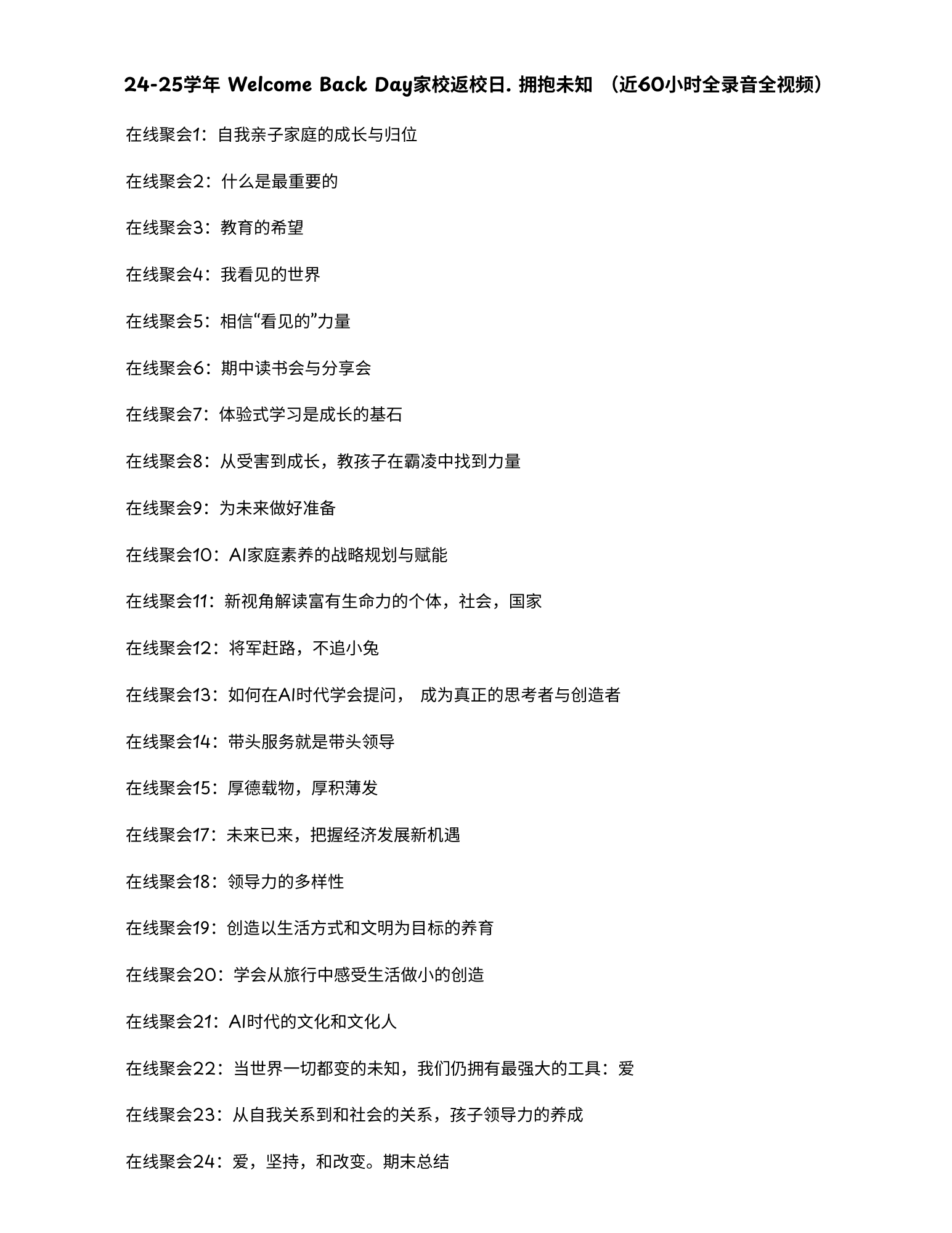 - 每周二的家庭思辨:22 次线上聚会,跨学科领读 + 家庭落地指导,紧贴世界与教育前沿。